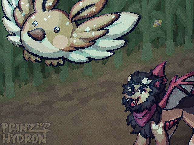 Hero realizes that the flying restriction in the maze doesn't apply to his beloved pwigi Omelette, so he sends her off in hopes that she will be able to lead him to the treasures that lay undiscovered.